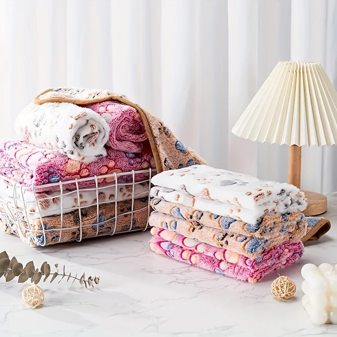 1 Pack Pet Dog Footprint Pattern Blanket Coral Fleece Warm And Comfortable Blanket